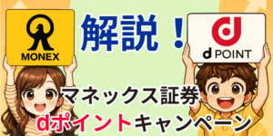 マネックス証券では「マネックスポイント」と「dポイント」の2種類が貯まります。投資信託の保有やクレカ積立て、各種キャンペーン参加などでポイントが付与され、dポイントへの交換も可能です。